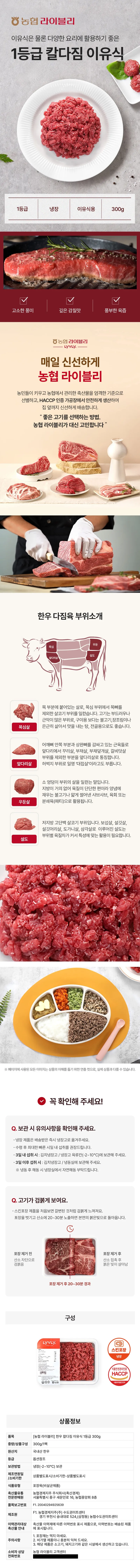 [농협 라이블리] 1등급 한우 칼다짐 이유식 300g 1팩