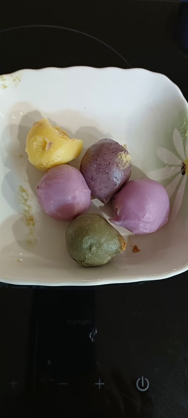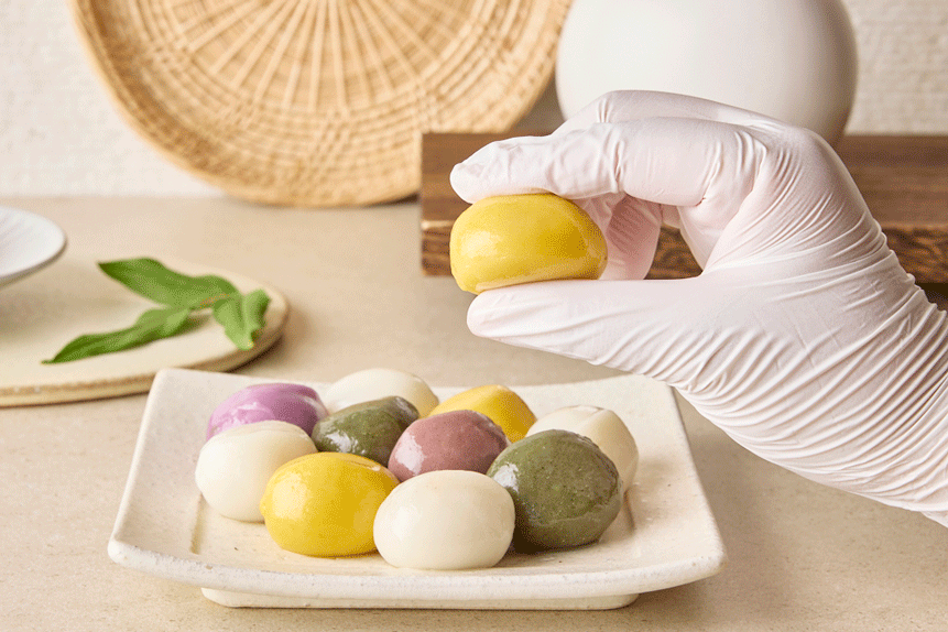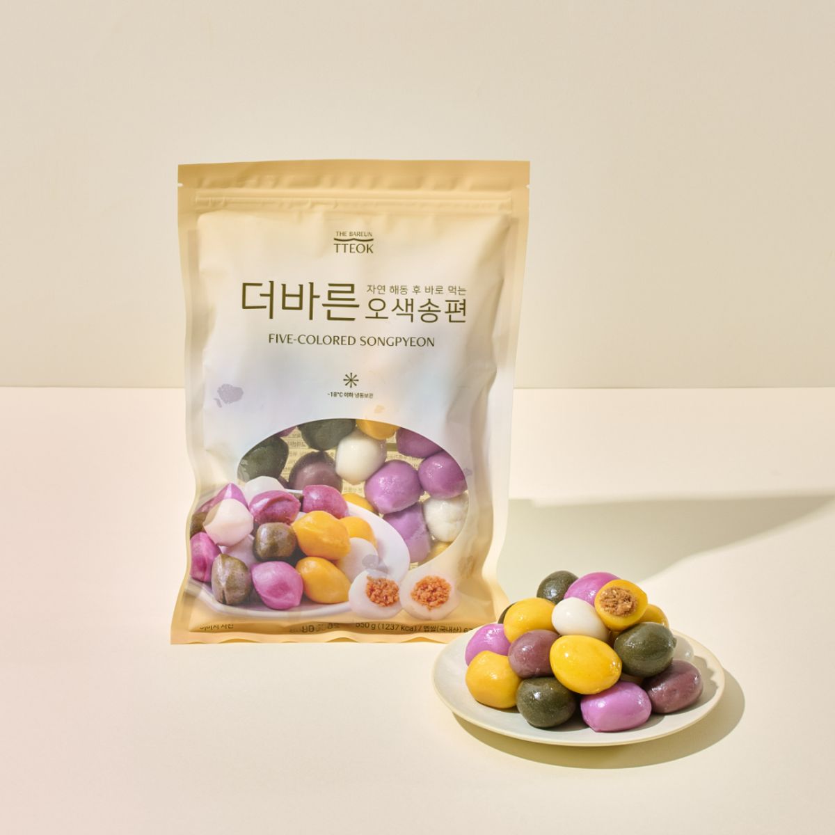 오색송편 첫날은 말랑하게 잘 먹었는데 냉동실 넣고 다음날은 좀 딱딱해진것이 있네요 공기접촉하면 굳어지는것 같아요