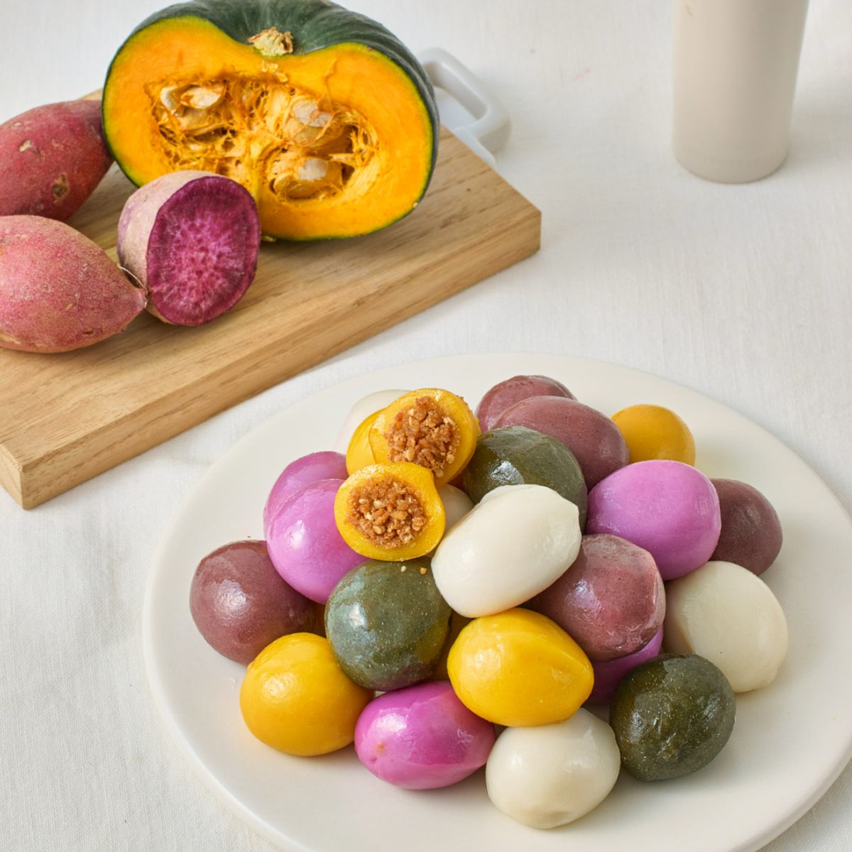 100% 국산 쌀과 원재료에서 추출한 천연분말로 건강하게 만든 송편입니다 방부제를 전혀 사용하지 않아 믿고 드실 수 있습니다. 호박, 쑥, 자색, 백미, 흑미 맛을 한 번에 즐길 수 있습니다.