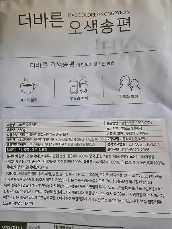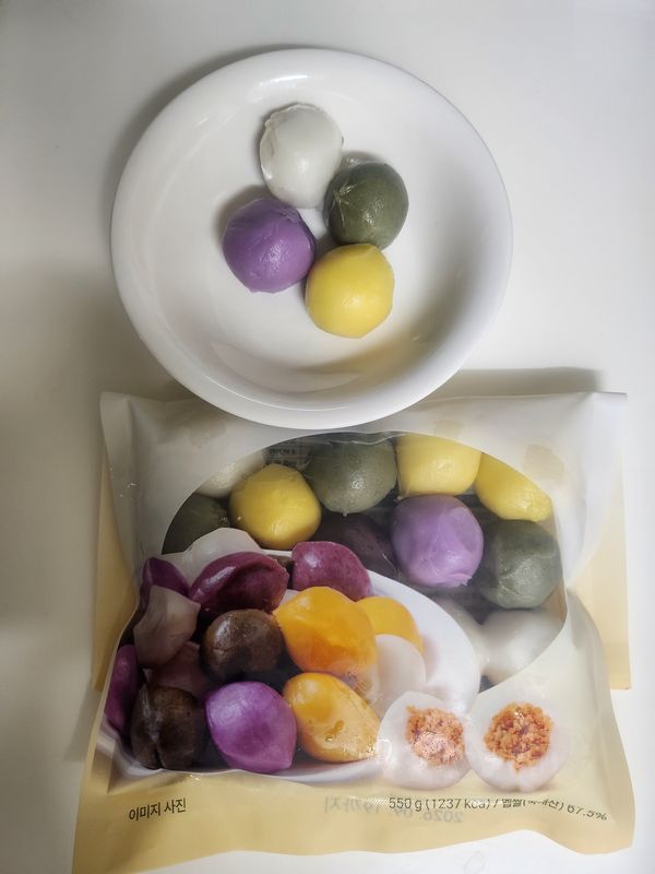오색송편이라 아이들이 좋아하네요. 냉동실에서 꺼내 1시간이 지나도 갓 쪄낸듯한 질감이 아니어서 찜기에나 렌지에 돌려 먹어야 더 맛있네요.