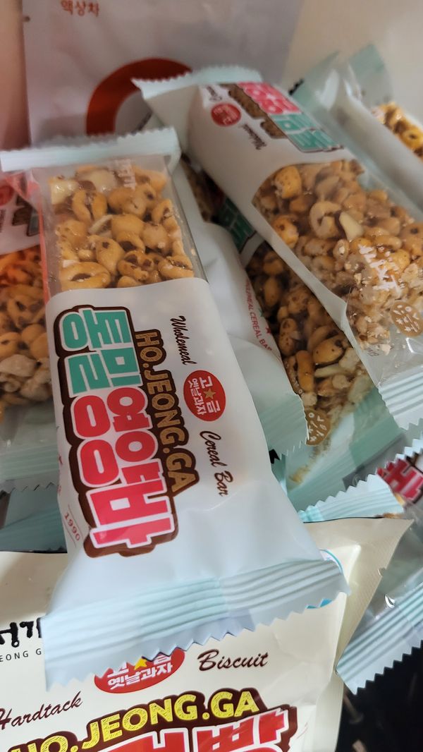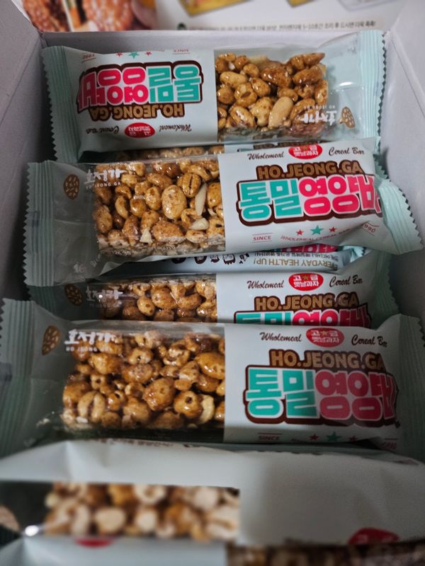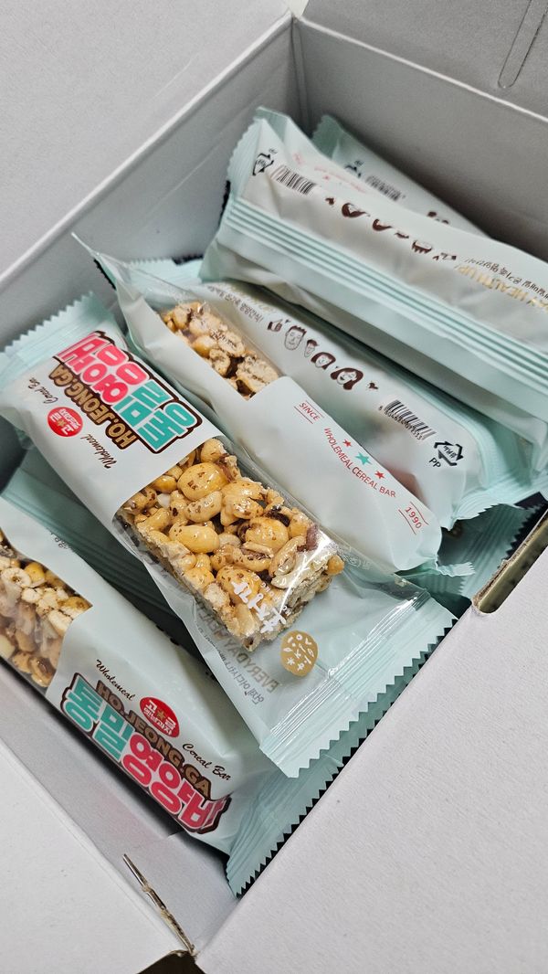 통밀 영양바 잘 받았습니다. 맛은 보리랑 땅콩이 있어서 그런지 더 고소하고 바삭한 맛입니다. 단 음식 좋아하지 않는 저한테는 단맛이 강하네요.
