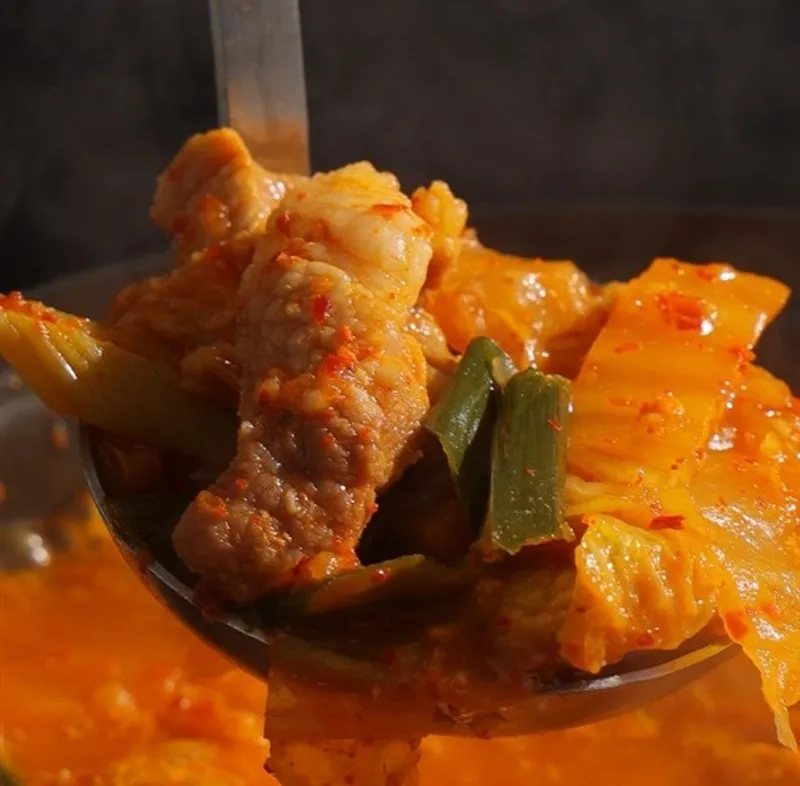 국산 배추로 정성껏 담근 김치와 국내산 한돈 앞다리살만을 사용했습니다. 김치의 풍미와 생고기의 고소함이 어우러져 믿고 먹을 수 있는 제대로 된 김치찌개예요.