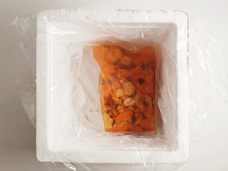 [보관 방법] 동봉해 드린 해수와 함께 냉장 보관 시 2-3일 동안 횟감으로 드실 수 있습니다. * 깐 멍게가 남으면 해수를 뺀 후, 물에 세척하지 마시고 그대로 냉동하셨다가 자연 해동하셔서 횟감으로 드셔도 됩니다. [소비 기한] 수령 후 냉장 시 2~3일 이내, 냉동 시 6개월 이내