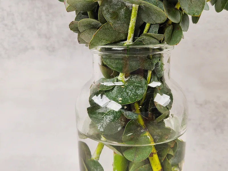 3. 줄기 끝은 사선으로 잘라주세요. 물 교체 시 조금씩 매일 잘라주시면 식물이 물을 더 많이 흡수해서 오래 보실 수 있어요.