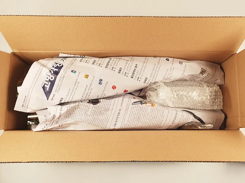 꽃 줄기를 플로랄 폼에 꽂은 후 완충재로 감싸 배송됩니다.