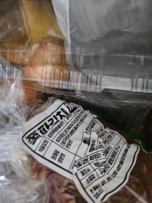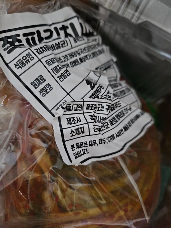 비닐 아랫쪽에 담긴 파김치는 양념이 거의 뱔려있지 않았어요. 그냥 액젓만 부었다고 느낄정도였어요. 비닐 포장도 두겹이었는데 속 비닐만 묶여 있고 밖의 비닐은 묶여 있지도 않았어요