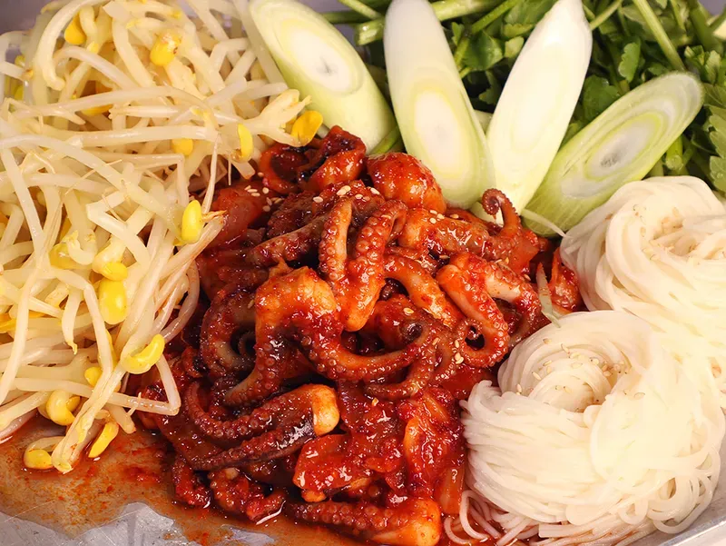 쭈꾸미는 작업 후 급냉 처리를 하여 신선도가 좋은 주꾸미만을 사용합니다. 주꾸미는 밀가루로 3번 세척하여 본연의 짠맛과 이물질을 깔끔하게 제거하여 사용합니다.