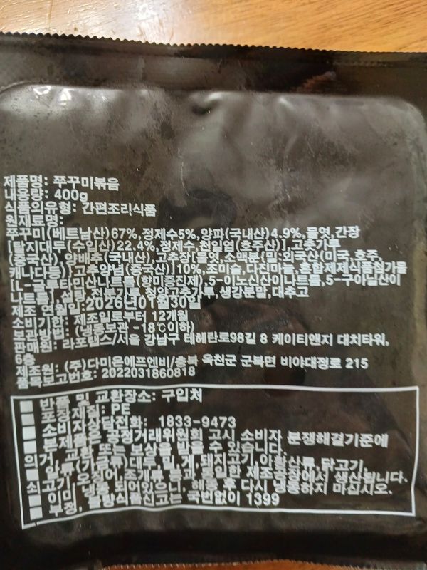 옵션: [1+1] 쭈꾸미볶음 400g*1팩 (2-3인분)