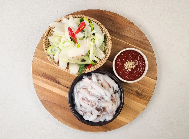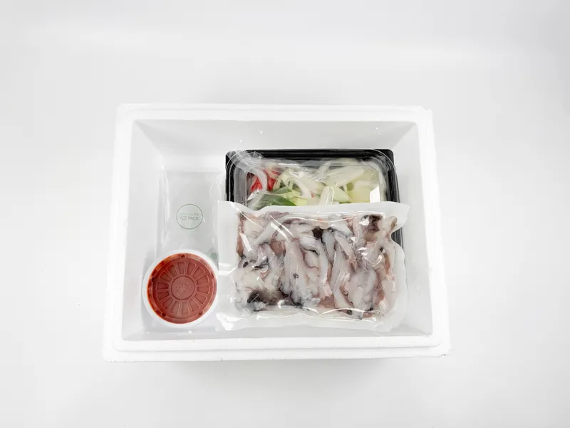 갑오징어 300-350g + 채소 300g + 소스 70g 구성입니다.