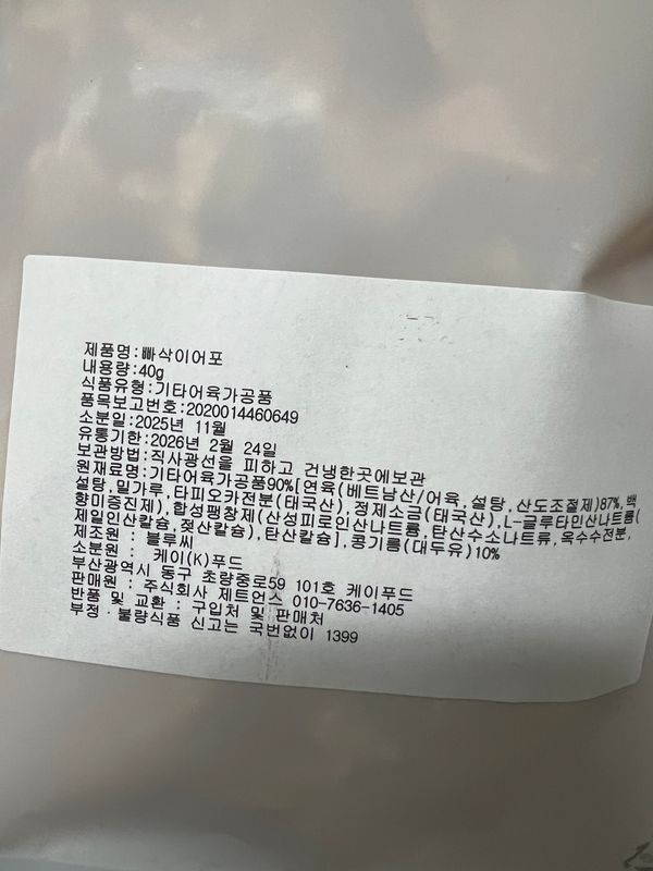옵션: 빠삭이 어포 40g