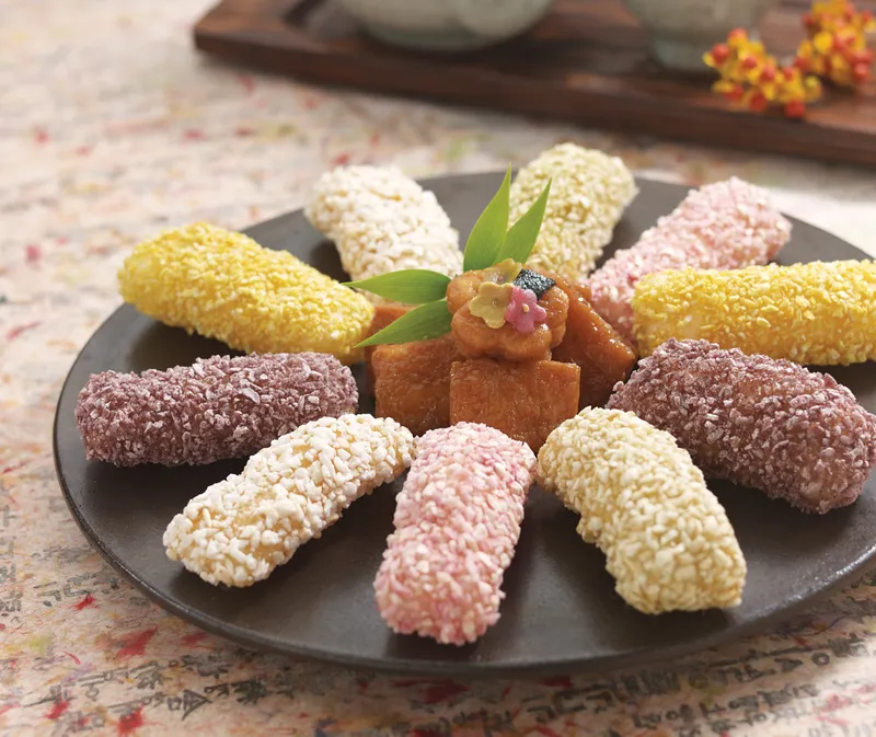 [약과] 꿀약과 / [유과] 찹쌀, 백련초, 단호박, 뽕잎 / [강정] 쌀, 백련초, 쑥 구성입니다.