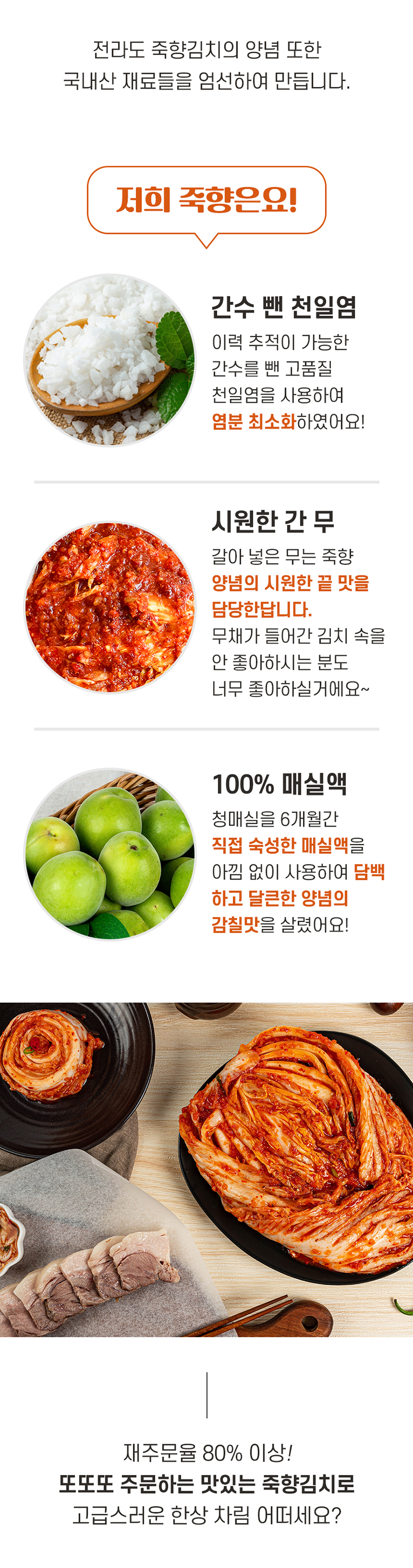 전라도 김치를 좋아하는데 어떤김치를 주문해야할지 고만하며 찾았어요. 죽향김치는 후기가 없어서 주문할때 고민이 되더라구요. 배송오자마자 김치를 먹어봤는데 정말 맛있네요. 김치향이 엄청 향긋하고 신선하고 맛있습니다. 좀더 익었을때 맛도 기대가 됩니다. 곧 재주문 하려구합니다