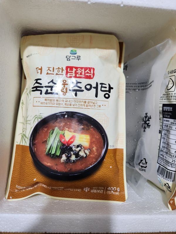 살짝 녹아서 왔지만 괜찮습니다. 온가족 보신용으로 좋아요! 죽순이 있어서 더 마음에 들어요. 우거지보다 훨 고급스러워요. 집에 있는 들깨가루 더 넣어서 먹습니다.