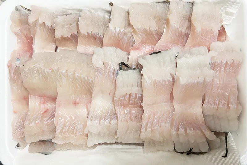 누가 손질하는지에 따라 그 신선도와 맛이 달라집니다. 샤브샤브나 구이용으로 드시기 좋도록 정성스럽게 손질하여 보내드립니다. 내장을 제거하고 몸통을 펼쳐 뼈를 촘촘하게 잘랐습니다.