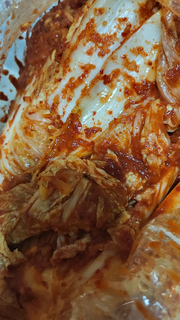 양념 맛있는데...배추가 너무 살아있네요~소금물에 절인건 맞죠..?