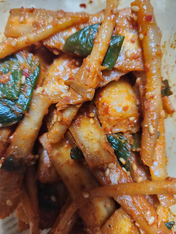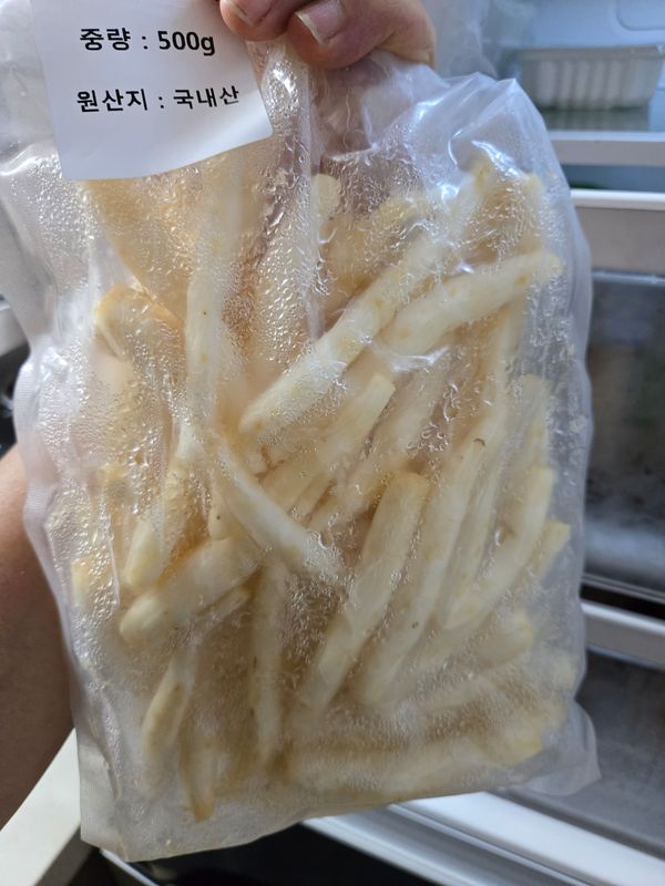 깔끔하게 손질은 되어서 도착이 되었습니다. 더덕의 굵기는 조금 작은 굵기인것 같은 것이였습니다. 썰어서 무침으로 해 먹어야 되겠69습니다.