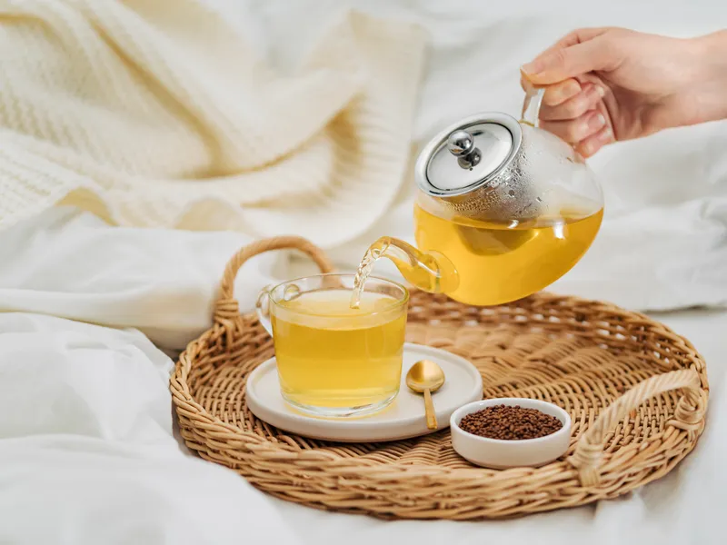 80℃ 정도의 뜨거운 물에 섞어 따뜻한 건강차로 즐겨보세요.