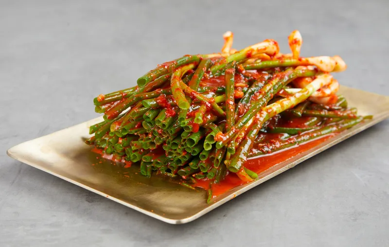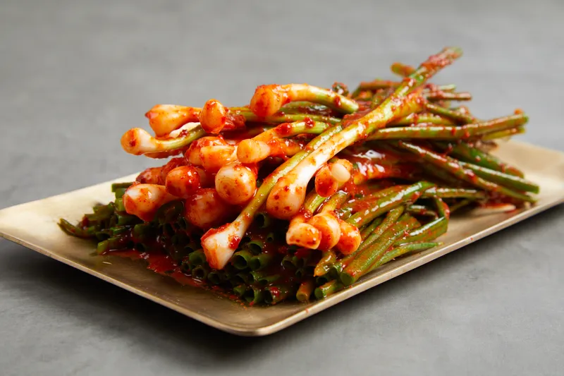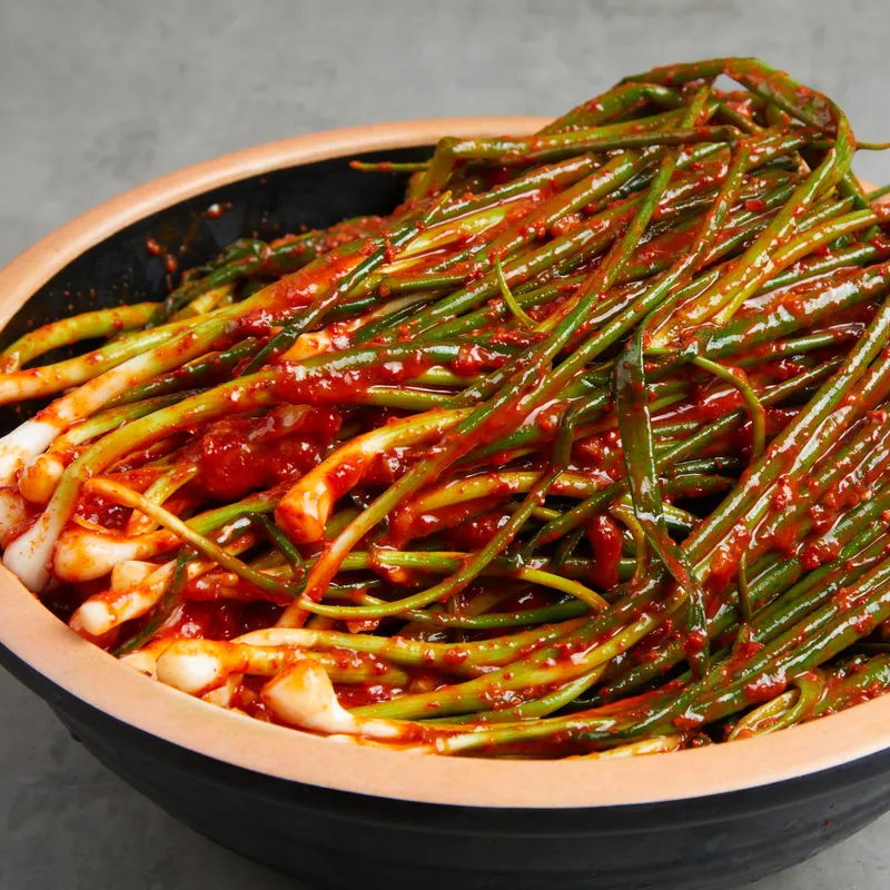 아삭아삭한 파에 매콤 쌉싸름한 양념이 더해져 한 번 먹기 시작하면 순삭 하게 되는 맛이에요. 줄기가 가늘고 부드러운 쪽파만을 엄선해 야들야들한 식감이 최고랍니다. 알싸한 맛을 시작으로 씹을수록 달큼한 맛이 우러나와요.