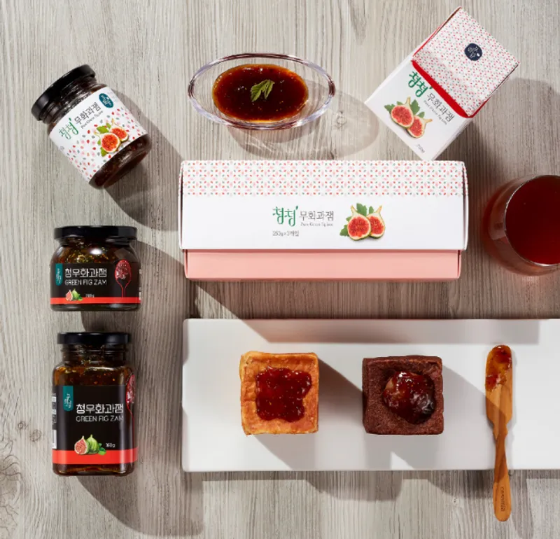 청무화과 중 당도가 뛰어난 것만 선별해 곱게 갈아 만든 수제잼입니다. 청무화과의 특징인 씨가 톡톡 씹히고 맑고 투명한 빛깔이 식감을 더욱 높여주죠.