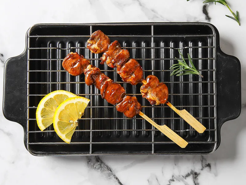 해동된 꼬치를 200℃로 예열된 오븐에서 약 20분간 조리해 주세요.