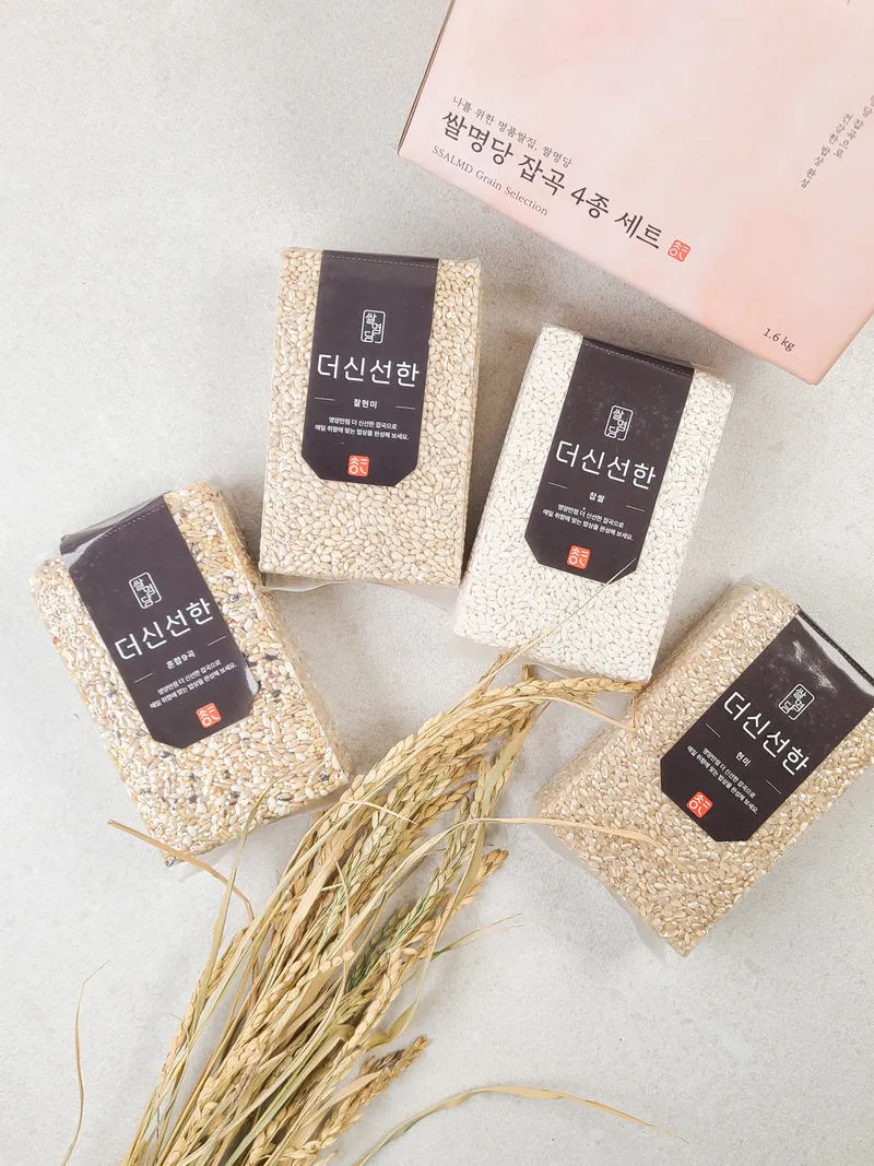 잡곡 4종을 하나의 구성으로 모두 만나볼 수 있는 선물세트예요. 찹쌀 그리고 현미와 찰현미, 혼합9곡을 어여쁘게 포장하여 담았답니다. 좋은 품질의 잡곡을 담은 선물세트를 직접 전해보세요.