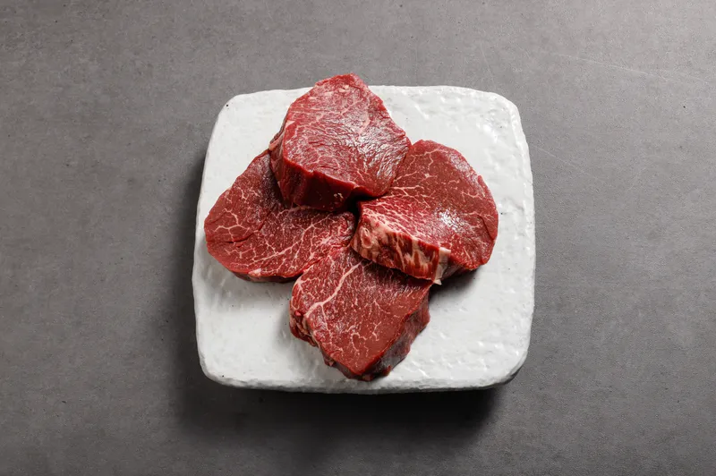 안심은 등심 안쪽에 위치한 부분으로 소고기 중에서 가장 결이 곱고 부드럽습니다. 소 한 마리에서 2~3%밖에 나오지 않는 최고급 부위입니다. 지방이 적고 담백하여 살코기로서 맛이 좋은 부위입니다.