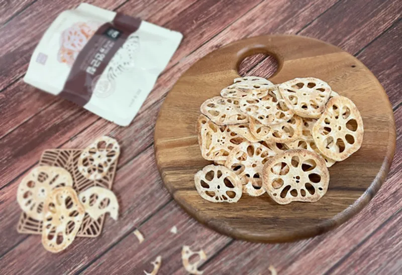 시중에 판매하는 연근칩에 비해 얇게 썰어내어 바삭바삭한 식감이 제대로! 살아있습니다.
