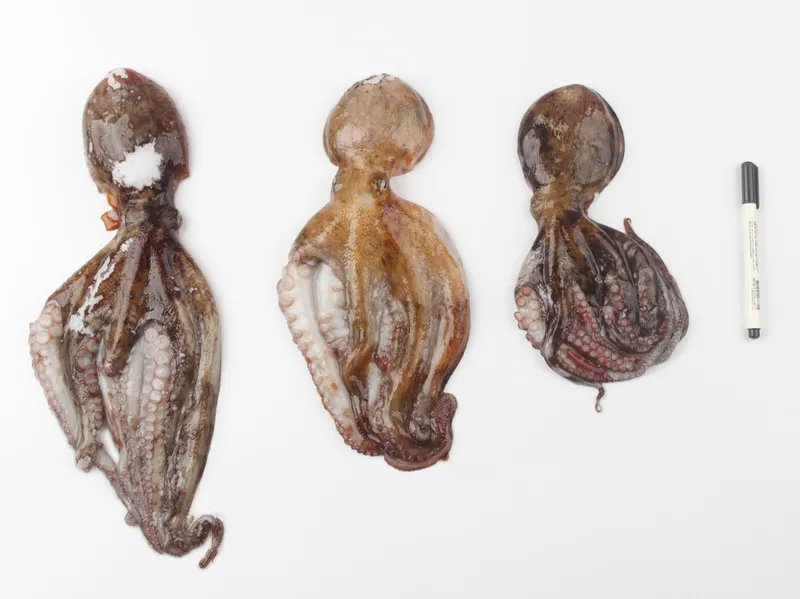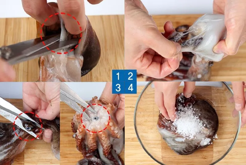 2. 문어의 내장을 손이나 가위로 제거해 줍니다.