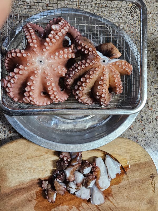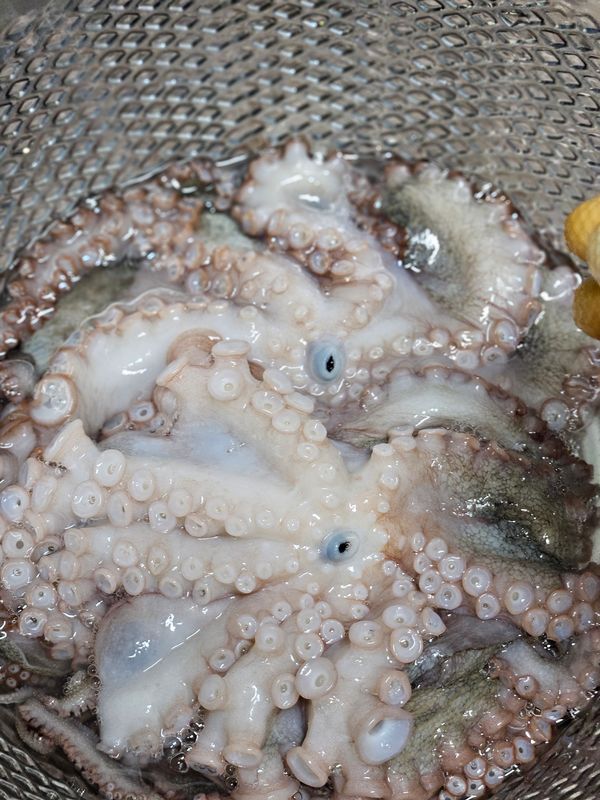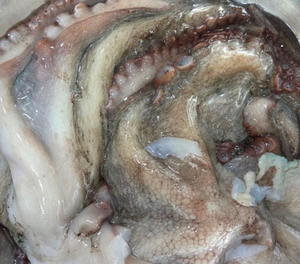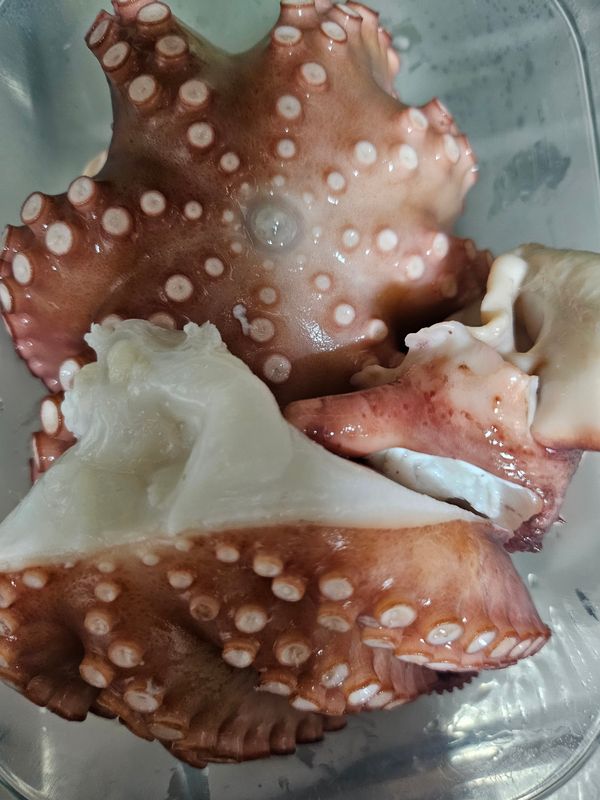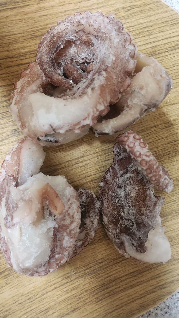 얼음을 넣어서 싱싱한 문어가 큰것 1마리,작은 것 1마리 왔어요. 사진은 여섯식구 먹고 남은 냉동실 문어의 모습예요. 너무나 맛있게 잘 먹었습니다. 감사합니다.