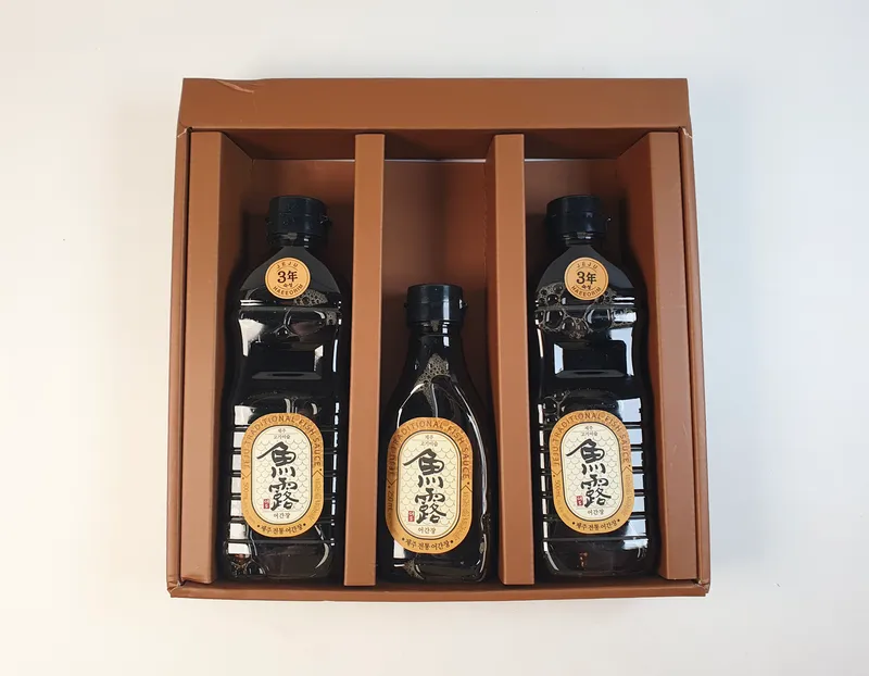 제주도 청정 지역에서 잡은 고등어와 전갱이를 사용하여 만든 어간장 선물세트입니다. 고기가 녹아 이슬처럼 맑은 액이 나올 때까지 1년 6개월 이상의 자연 발효 과정을 거칩니다. 그 덕분에 제주의 바다 풍미를 더 선명하게 느껴볼 수 있습니다.
