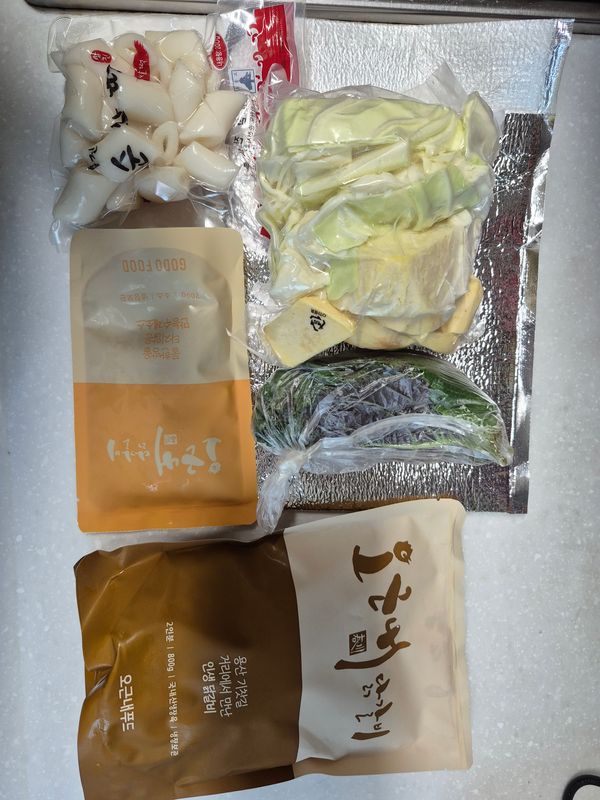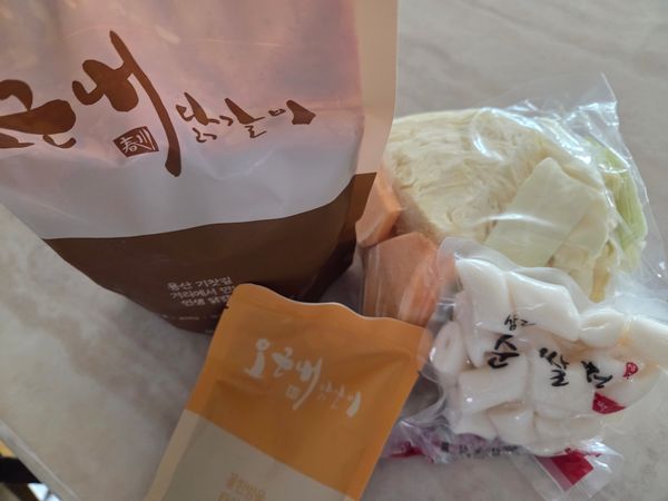 깔끔하게 야채 손질까지 다 되어 있어서 요리하기 간편했어요 신랑은 양념에 후추맛이 강하게 느껴져서 먹는데 목이 좀 따끔거린다고 하네요 저는 구멍 뚫린 떡사리가 맘에 들었어요 그래도 맛있는 저녁식사가 되었어요 먹느라 정신 팔려서 조리된걸 놓쳤네요 ㅠ