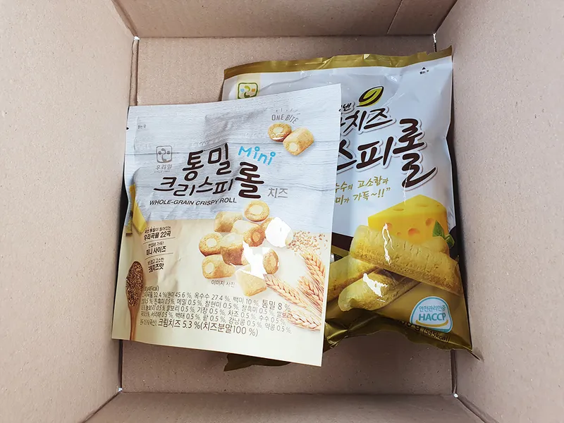 덴마크 체다치즈가 들어있는 크리스피롤! 하나씩 깔끔하게 포장되어 있어 간편해요.
