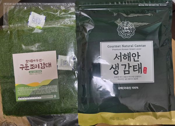 생 감태김 정말 맛이 좋네요 생이어서 구워야하는 번거로움은 있으나 그래도 싸게 잘 산거 같아요~