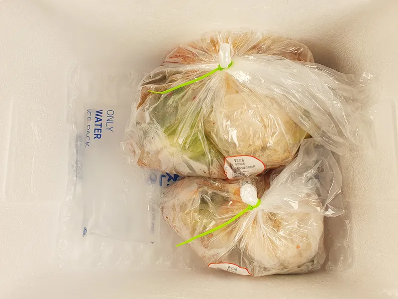 *국물에 푹 잠기지 않은 상태로 보관 시 양념이 가라앉아 젓갈과 짠맛만 남습니다. 꾹꾹 눌러 국물에 잠긴 상태로 보관하면 양념과 잘 섞여 최상의 맛을 느낄 수 있고 오래 보관할 수 있습니다.