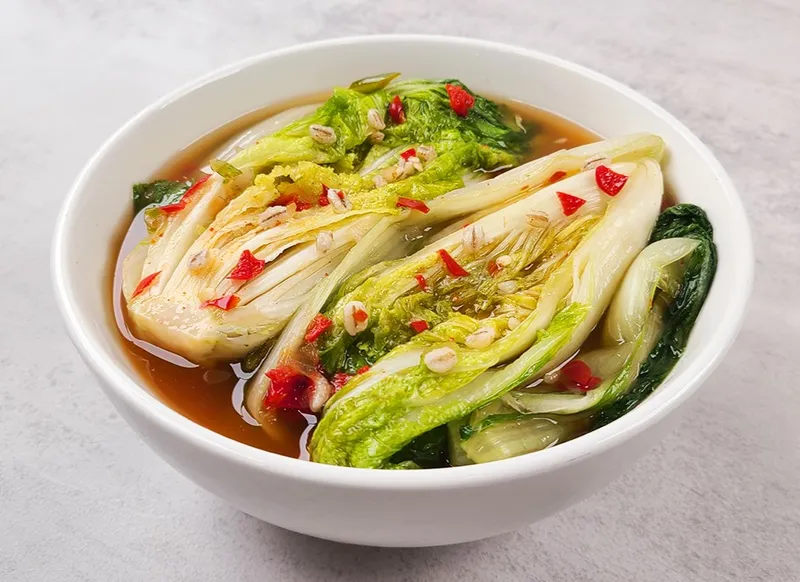 꽁보리를 넣어 발효 시킨 시원한 국물이 일품! 개운하고 깔끔한 맛으로 자꾸만 손이 가요. 기름진 음식 먹을때 같이 먹어 주면 환상의 조합을 자랑합니다.