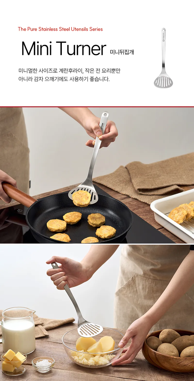 위생적인 퓨어 스텐 304 조리 도구 (국자 2종/뒤집개 3종)