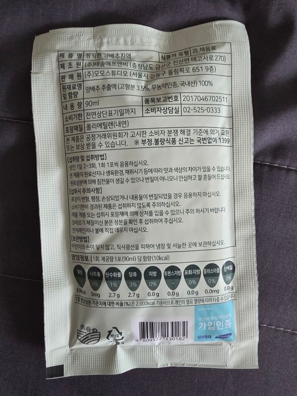 그전에 먹던거 보단 약간 연한맛이네요. 그래도 무농약인게 맘에 들고 부담없이 먹기 좋아요~ 오랫동안 양배추즙 먹었더니 위염이 많이 좋아졌습니다