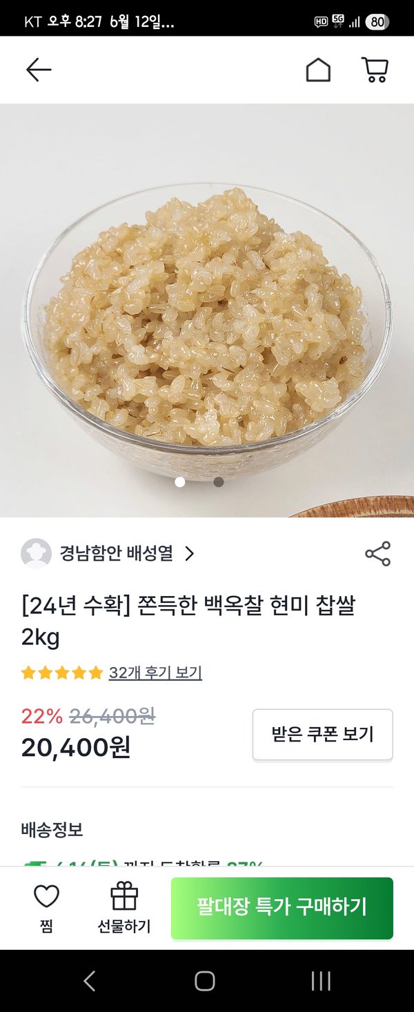 아주 만족합니다.밥도 좀 고소한 느낌이고 쫀득하고 제입에는 딱인 쌀을 알아낸거 같습니다.앞으로 계속 주문해서 먹겠습니다.