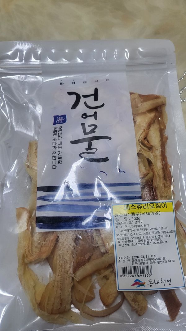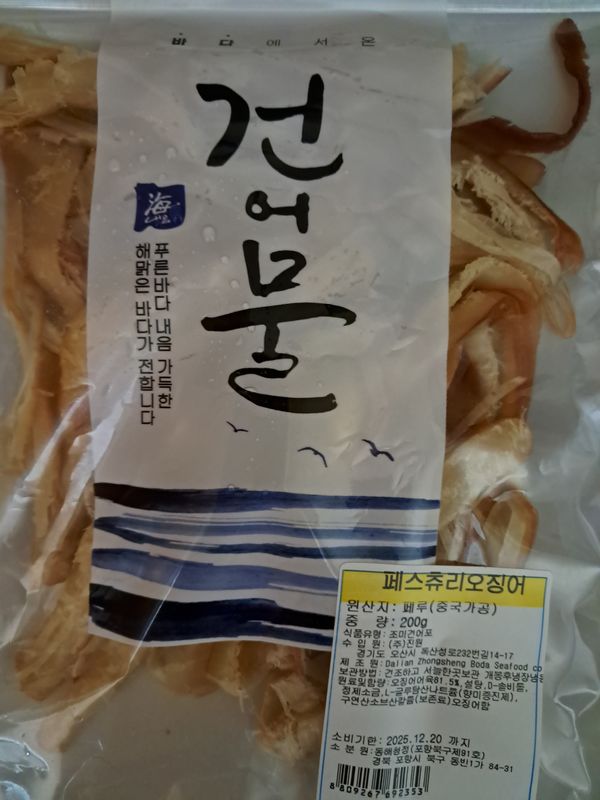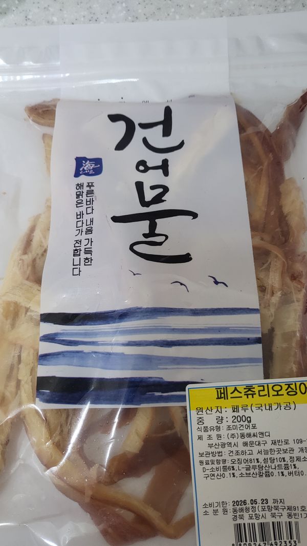 헐...국내가공이 아니라고 미리...설명했더라면 구매고민을좀 했을것같은데...그냥 페루산 오징어를 국내가공한줄 알았어요...이렇게 단계가 많이 거친 가공품이면...좀 생각했을텐데...받고보니 스티커가 붙여있어서...다시 상품설명을 확인했네요.
