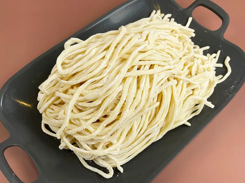 밀가루의 글루텐을 강화하고 면을 적정한 온도로 오랜 시간 숙성시키는 ‘다가수 숙성 방식’으로 만들었습니다. 반죽을 쫄깃하면서도 부드럽게 해주는 고급 공법입니다.