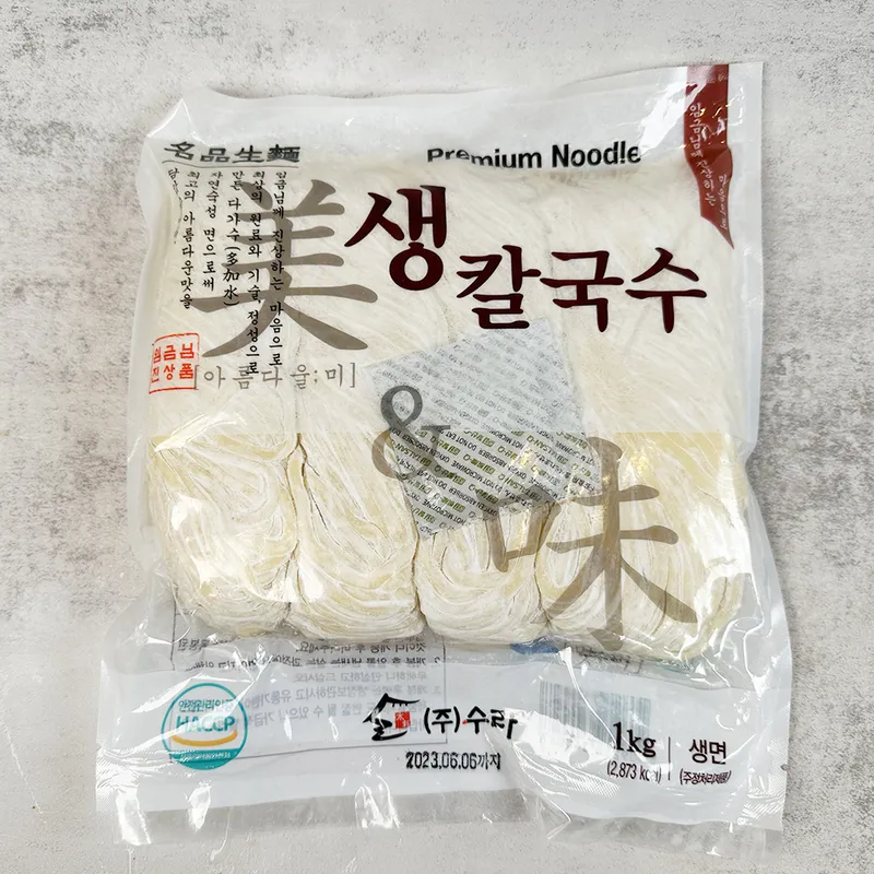 이제 집에서 번거롭게 생칼국수면을 만들 필요 없어요. 고품질 밀가루를 사용하여, 집에서 만든 것처럼 쫄깃쫄깃한 칼국수 사리를 준비했습니다.