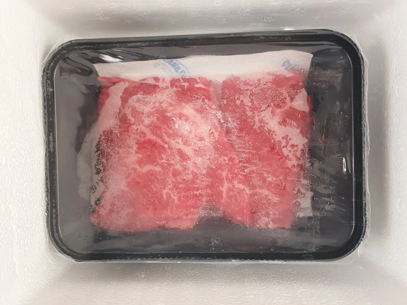 일정한 크기를 위해 한우를 급냉하여 커팅합니다.