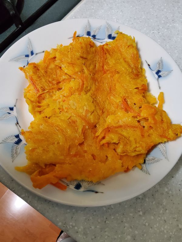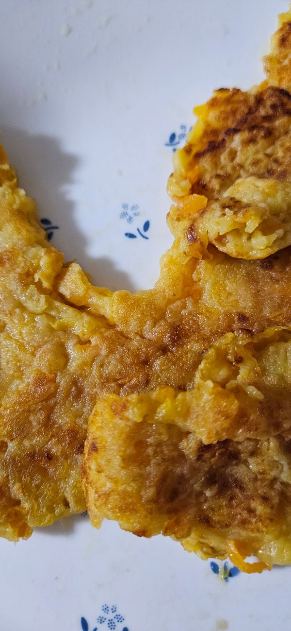 진짜늙은호박의 달콤함이 진하게 느껴지는 호박전을 먹었네요! 노랗게 부쳐지는 호박전과 당근의 조화도 좋아요