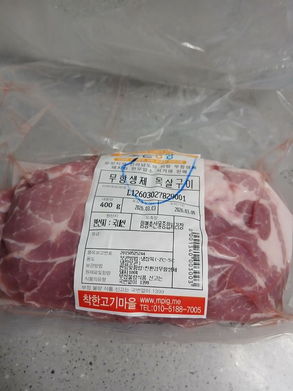 옵션: 무항생제 목살 구이용 400g / 400g X 1팩