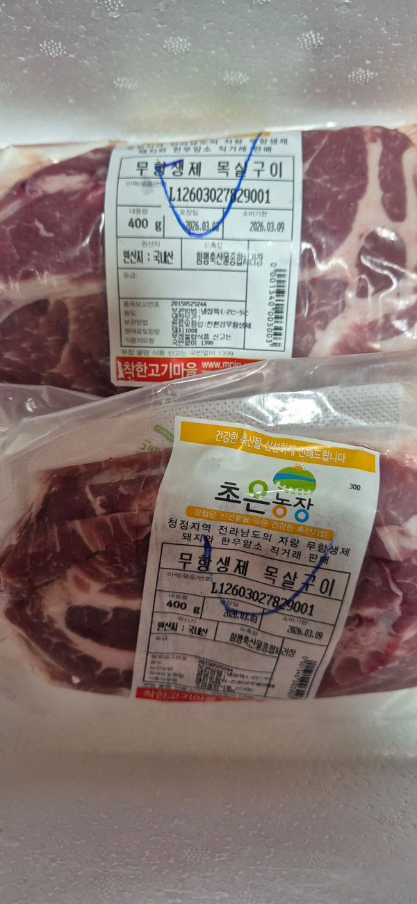 옵션: 무항생제 목살 숯불용 400g / 400g X 1팩