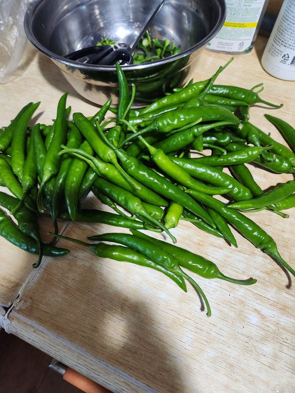 고추가 엄청싱싱하네요~받자마자 깨끗이 씻어서 장아찌 담궜네요~싱싱해서 넘넘 맛있을거 같아요~언능 맛이들어 먹고싶네요