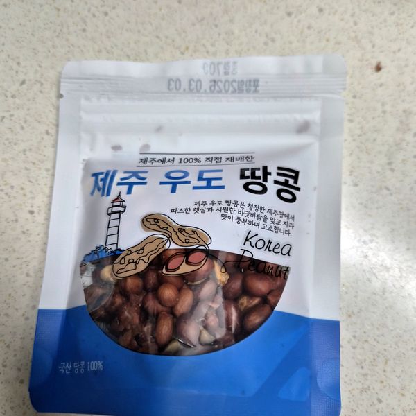 고소한 우도땅콩~맛나게 잘..먹고있 습니다 국내산 땅콩이 너무비싸 구매하기가 꺼려지는차에 우도땅콩을 만나 반가웠습니다^^