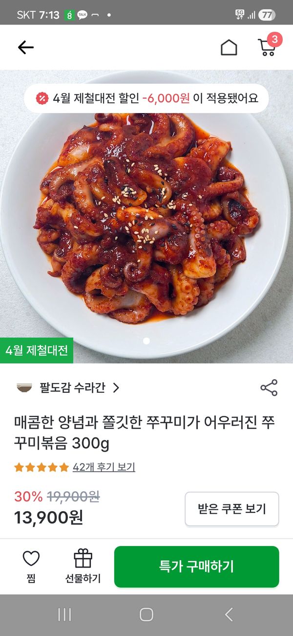 옵션: [1+1] 쭈꾸미 300g 1팩