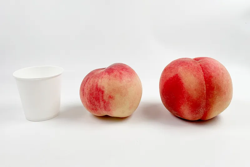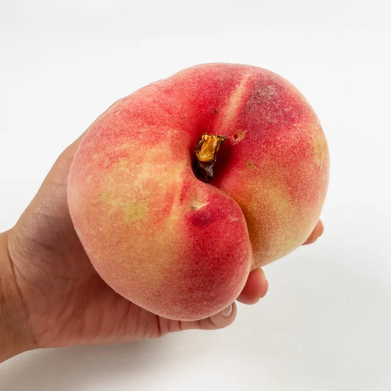 - 복숭아는 나뭇가지에 붙어서 자라기 때문에 가지 눌림 자국이 있거나, 꼭지 부분이 거뭇하고 꼭지가 벌어지면서 진액이 생길 수 있습니다.