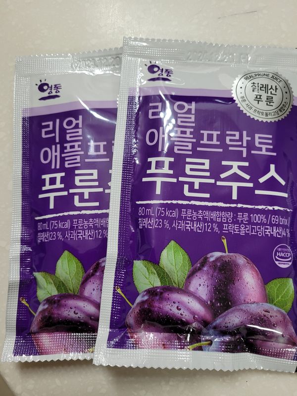 아들이변비가 심한데 푸룬쥬스 안먹어서 속상했는데 이건 맛나다고 잘먹네요 저녁무렵 시간차두고 2봉 먹었는데 화장실직행 !!ㅎㅎ